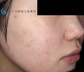 イベルメクチンクリームや、AZAクリア、エクスフォレーティングクレンザー、コラージュリペアローションをホームケアでは使用しています。赤みざらつきがかなり良くなっています。