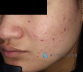 当院オリジナルアゼライン酸配合美容乳液「アゼフォース」使用1ヶ月の経過写真です。