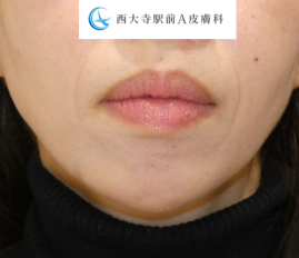 ヒアルロン酸1本をアゴに注入し、輪郭が整いました。ボトックスも併用することで梅干しジワも改善しています。