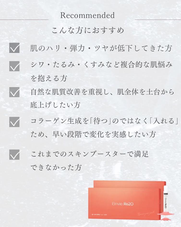 不足したコラーゲンや肌の土台を直接補い、ハリ・弾力・キメ・透明感の改善、毛穴の引き締めなどを目的とし、肌本来の再生力を引き出す効果が期待されています。